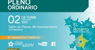 El Pleno del Ayuntamiento de El Rosario aprobó hoy, martes, en sesión extraordinaria, el proyecto de presupuestos para el ejercicio 2020, que alcanza los 17.289.081’99 euros y que en términos relativos representa un crecimiento del 5’02% respecto al del presente ejercicio (826.811’73 euros más). Se da la circunstancia de que, además, es el primer ayuntamiento de la Isla en aprobar su presupuesto para el año que viene. Salió adelante con los votos a favor de IR-Verdes y Sí se Puede (9) y los votos en contra de PSOE, C’s, PP y Podemos (6). Los representantes de CC no asistieron a la sesión.