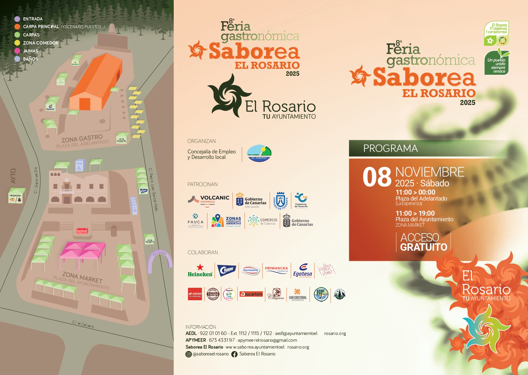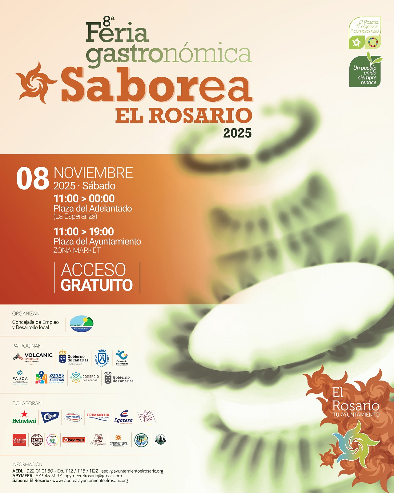 El Ayuntamiento de El Rosario y la Asociación de Pequeños y Medianos Empresarios de El Rosario (Apymeer), con el patrocinio del Gobierno de Canarias, a través de Volcanic Xperience, y del área de Comercio del Cabildo de Tenerife, organizan esta feria gastronómica, que cuenta como colaboradores principales con las empresas Montesano, Egatesa y El Gusto por el Vino y, por primera vez esta edición Heineken y Clipper.