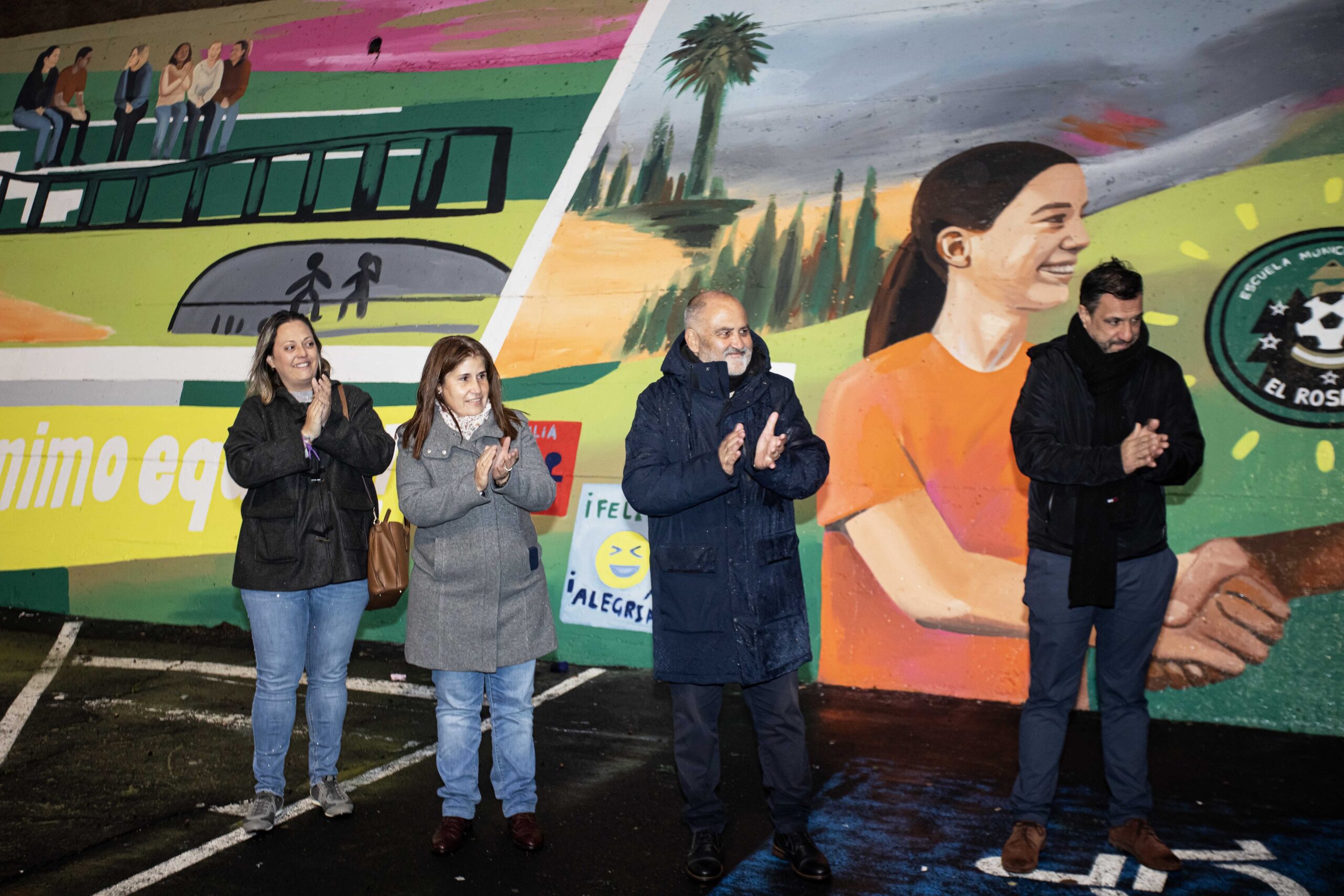 El Ayuntamiento de El Rosario inauguró en la tarde de ayer, jueves, la pintura mural creada con motivo del proyecto “Ruta de Valores”, impulsada por el Consistorio a través de la Escuela Municipal de Fútbol de El Rosario y desarrollada junto a la artista y docente Elia Estévez en el campo de fútbol “Maximino Bacallado”. Este proyecto nace a partir de una idea concebida por el psicólogo del club Juanra Álvarez, centrada en la promoción del buen trato, la ética deportiva y el bienestar emocional en el fútbol base.
