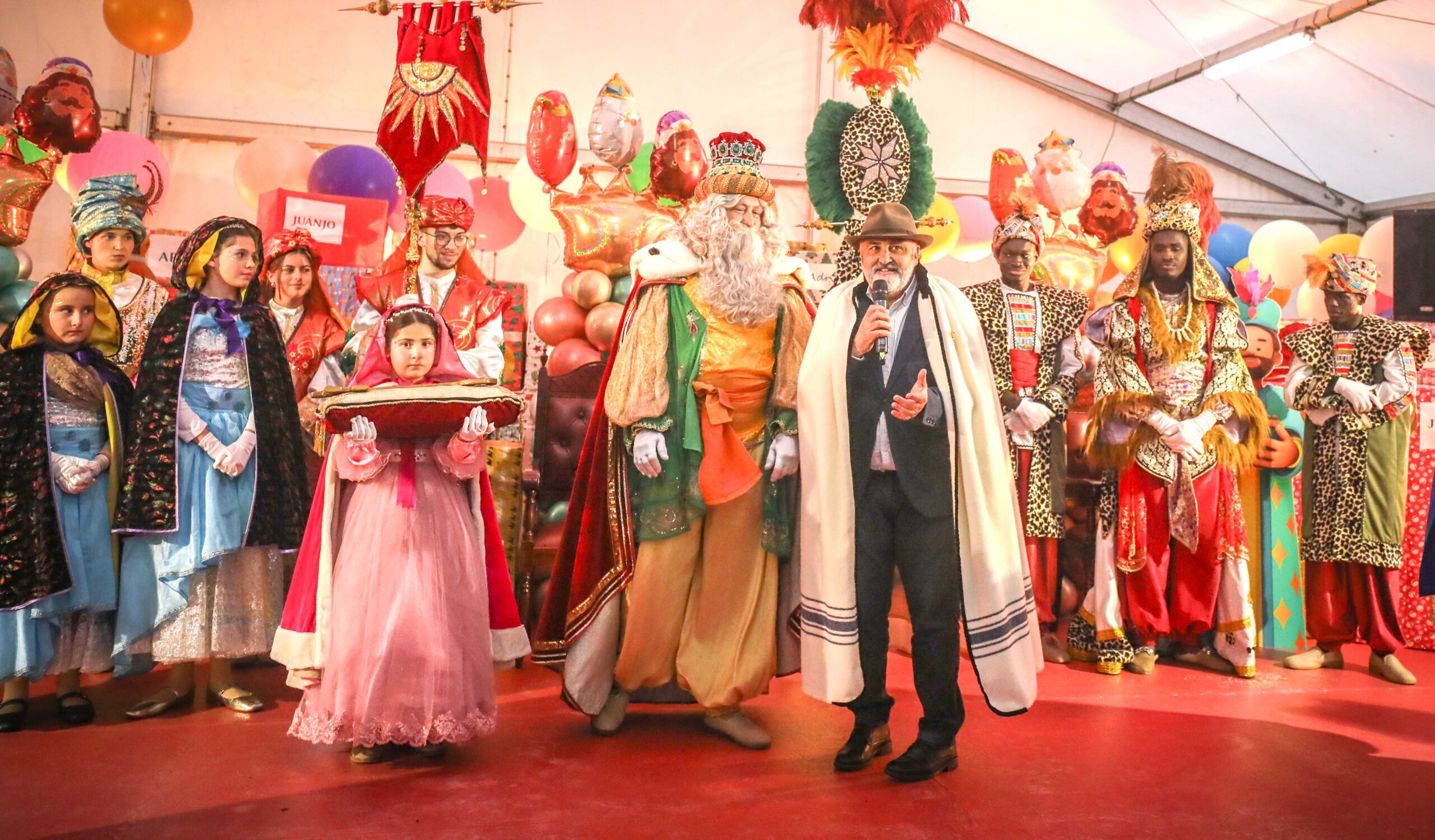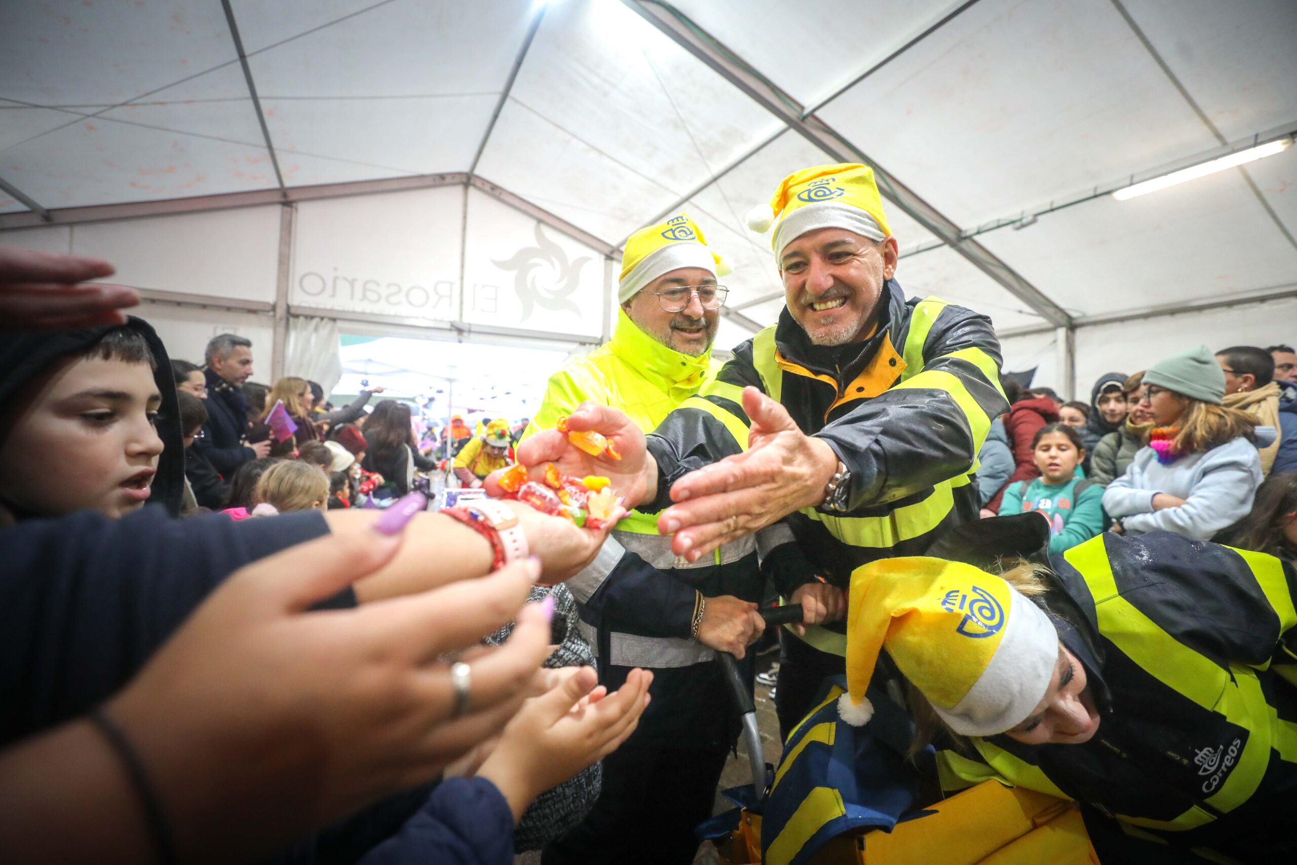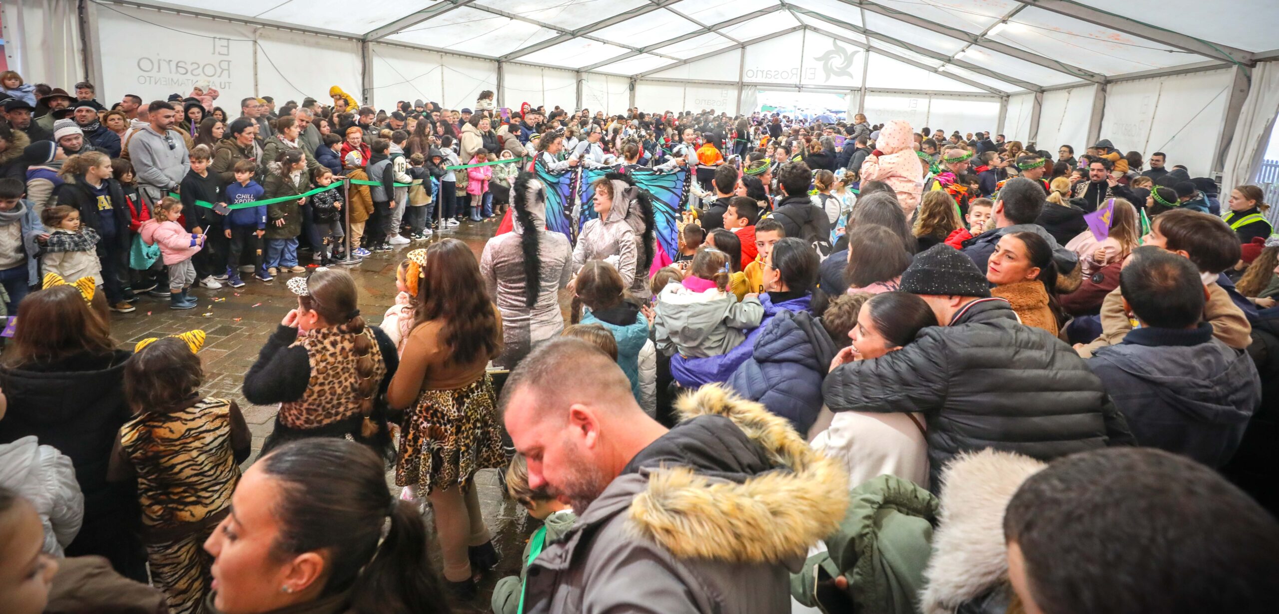 El frío y la lluvia no amilanó a una multitud de familias que quiso recibir a los Reyes Magos de Oriente en la gran carpa de la plaza del Adelantado, en La Esperanza. En esta edición, debido a la ya anunciada meteorología adversa en prácticamente todas Canarias, el desfile real se llevó a cabo en el interior de la carpa donde cientos de niños y niñas llegados de distintos puntos de la Isla esperaban la llegada de Sus Majestades. Junto a figurantes, personajes Disney o zancudos, no faltaron a la cita Correos y la Brigada Forestal de Tenerife (Brifor), los vehículos de Mundo Mini Classic Tenerife, la ACM “Princesa Yaiza”; el Club Patín Tiara, el grupo infantil coreográfico Rebeca García Frías y el grupo de Sevillanas y Flamenco de Estefanía Luque.