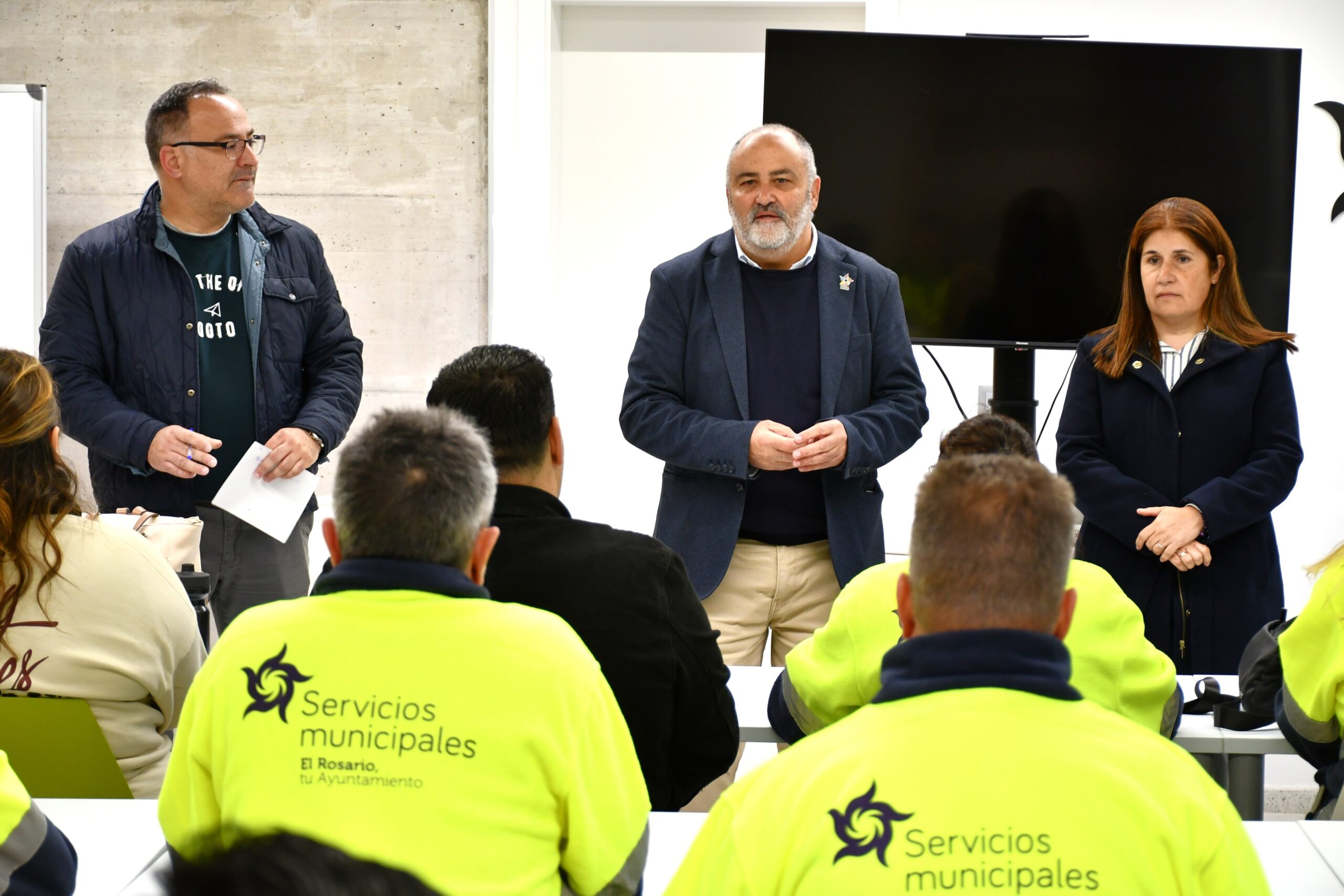 El alcalde de El Rosario, Escolástico Gil, que estuvo acompañado de la primera teniente de alcalde, Fátima Gutiérrez, y del concejal de Empleo y Desarrollo Local, Yeray Gutiérrez, destacó “la apuesta decidida del Gobierno local por desarrollar políticas de empleo que ofrezcan oportunidades reales a personas desempleadas, especialmente de aquellas con mayores dificultades de inserción laboral, y, además, con cuyo trabajo se verán beneficiados los servicios públicos municipales”.