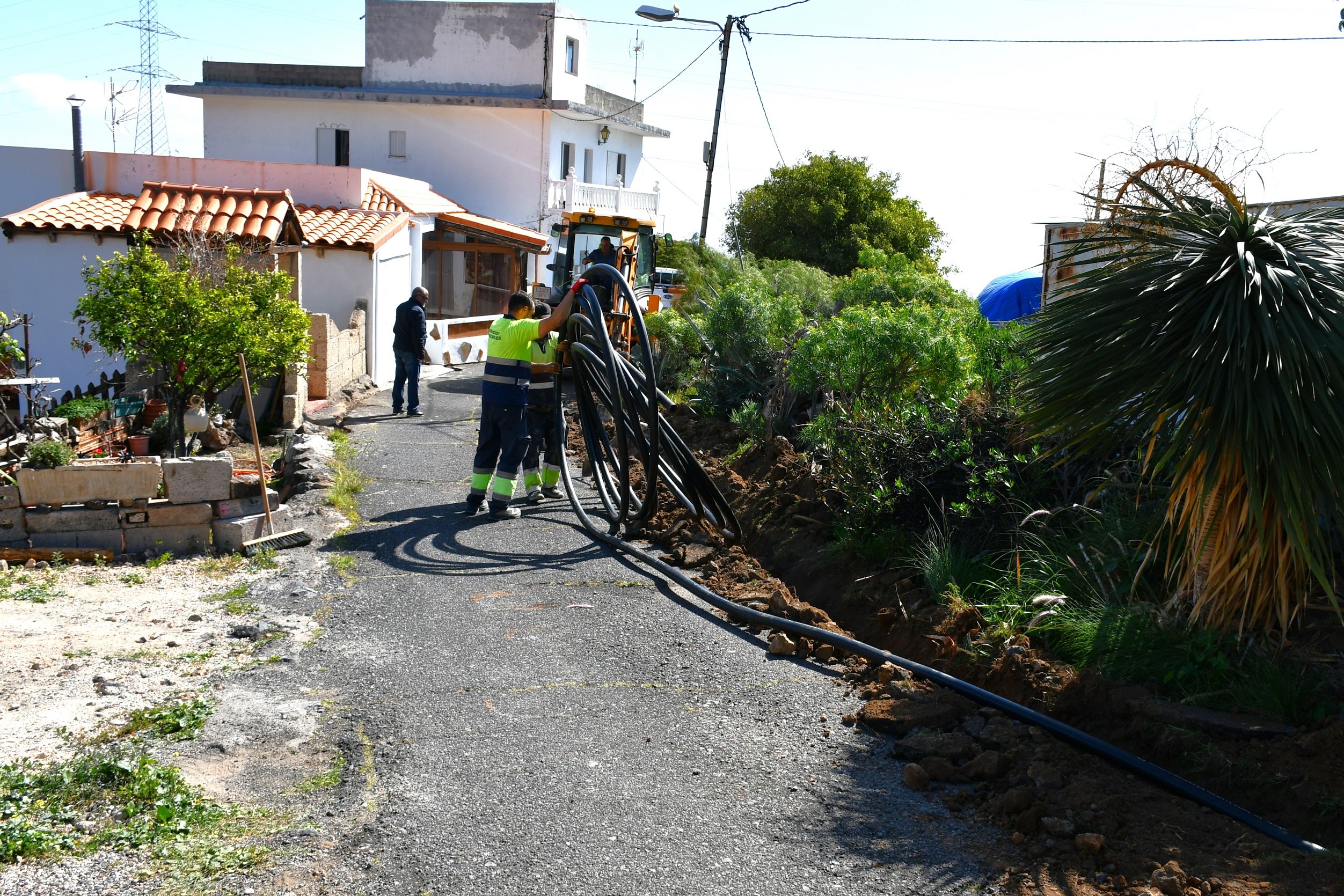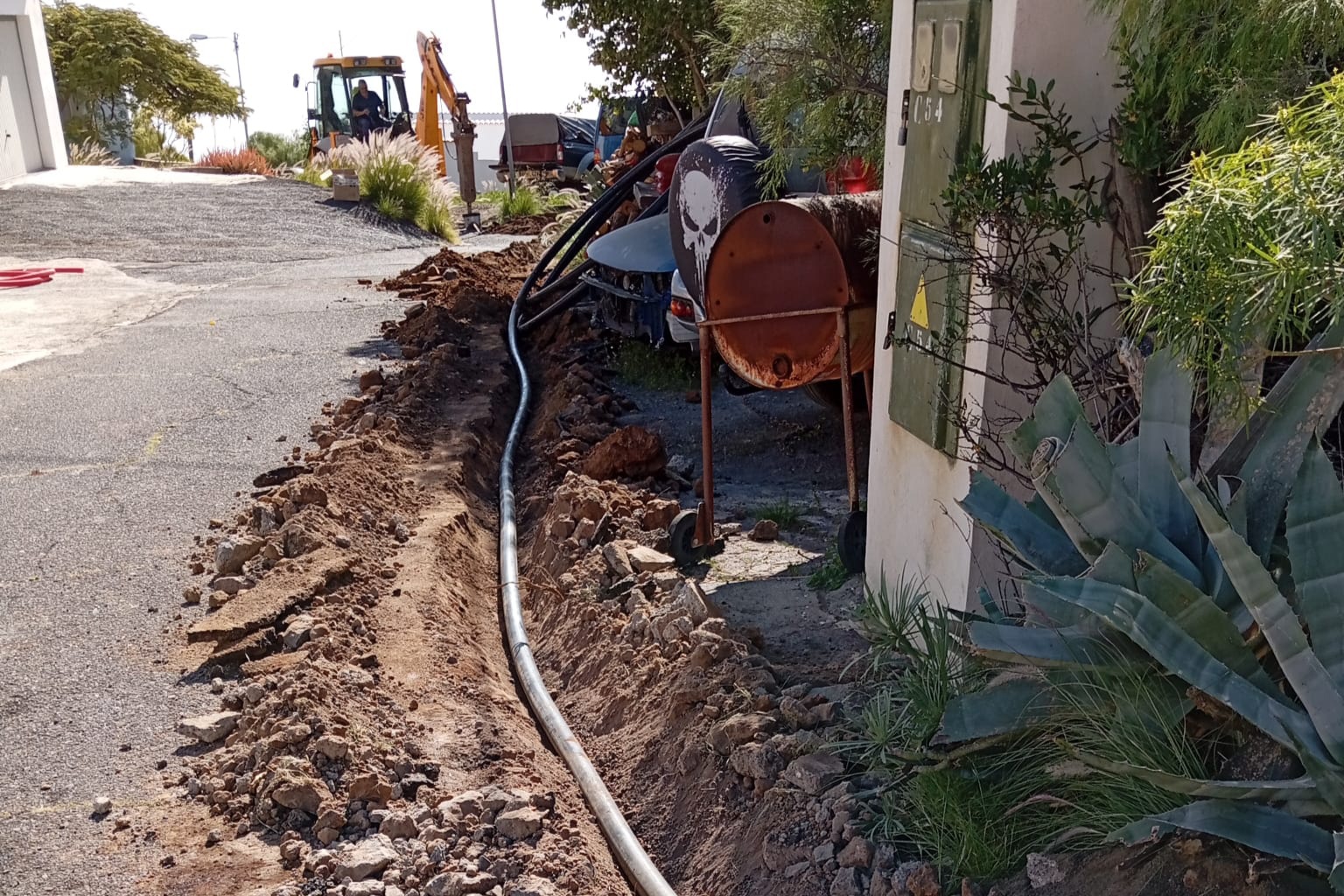 El Ayuntamiento de El Rosario ha iniciado en el camino El Conde, en Barranco Hondo, una serie de actuaciones de renovación de redes de agua en varias de las calles que se beneficiarán del III Plan de Asfaltado Municipal. De esta forma, previamente al inicio de los trabajos de reasfaltado, se acometerá la apertura de zanjas para la instalación de nuevas tuberías de agua y las necesarias acometidas domiciliarias.