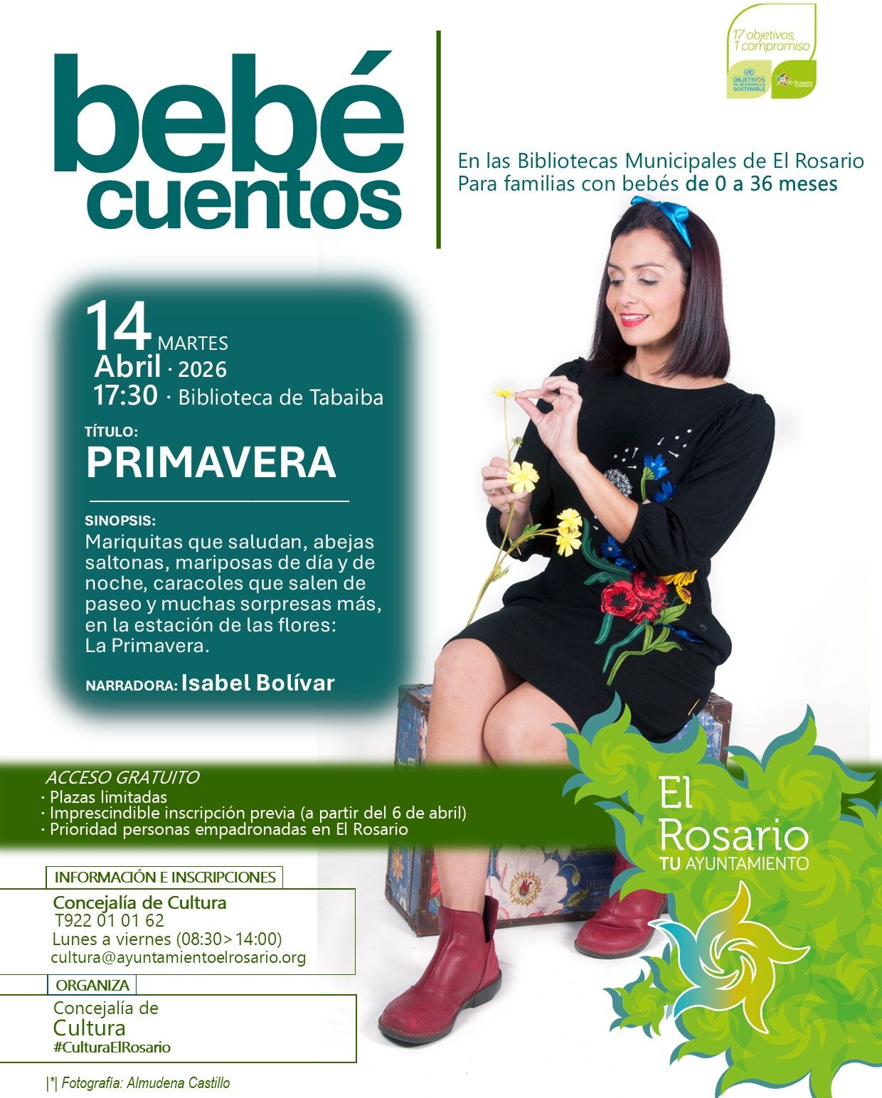 👶📖 Continúa la temporada del ciclo de bebécuentos, una actividad para familias con bebés de 0 a 36 meses basada en la narración de cuentos sencillos, canciones y juegos creativos. El 14 de abril (17:30) en la biblioteca de Tabaiba. ACTIVIDAD GRATUITA.