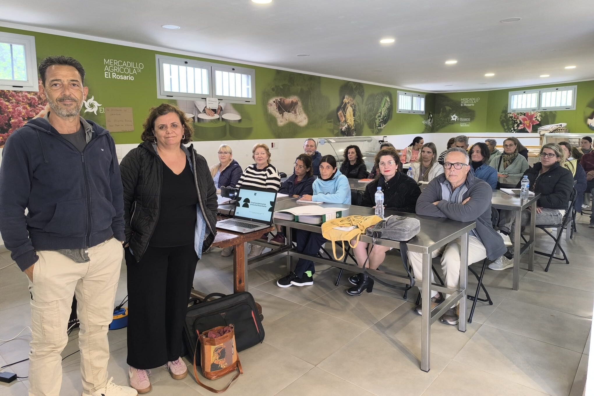 El Mercadillo Agrícola de El Rosario, en La Esperanza, acogió el pasado martes la presentación del curso “Usuaria profesional de productos fitosanitarios. Nivel básico", que organiza Agrocabildo con la colaboración del Ayuntamiento de El Rosario para posibilitar, en este caso especialmente a mujeres y a personas desempleadas del Municipio, la obtención gratuita del carné de nivel básico de usuario de productos fitosanitarios. El curso está homologado por la Consejería de Agricultura, Ganadería, Pesca y Aguas del Gobierno de Canarias. El concejal de Agricultura, Fidel Vázquez, asistió a la primera jornada de esta actividad formativa que se desarrollará hasta el 30 de abril.