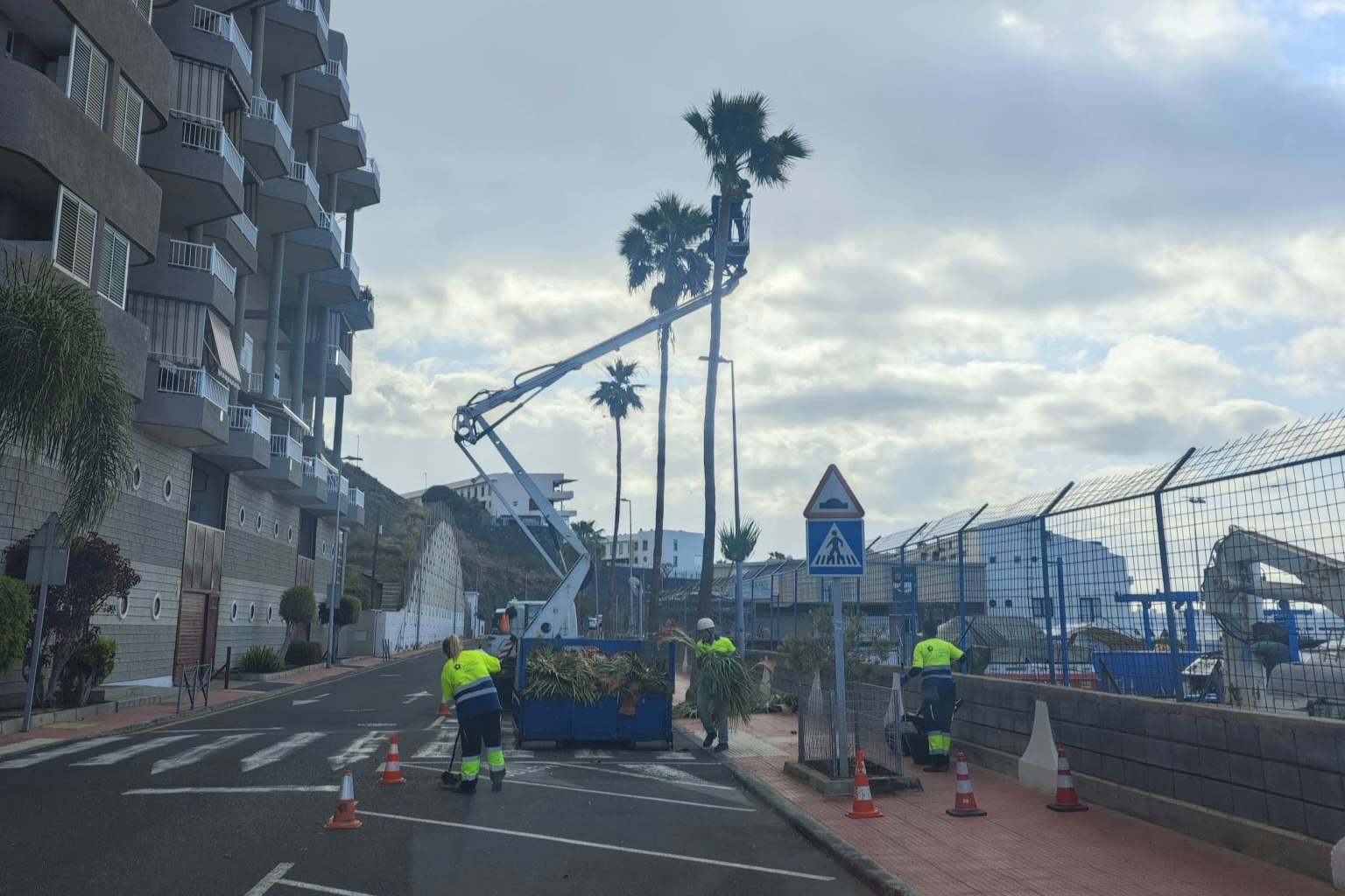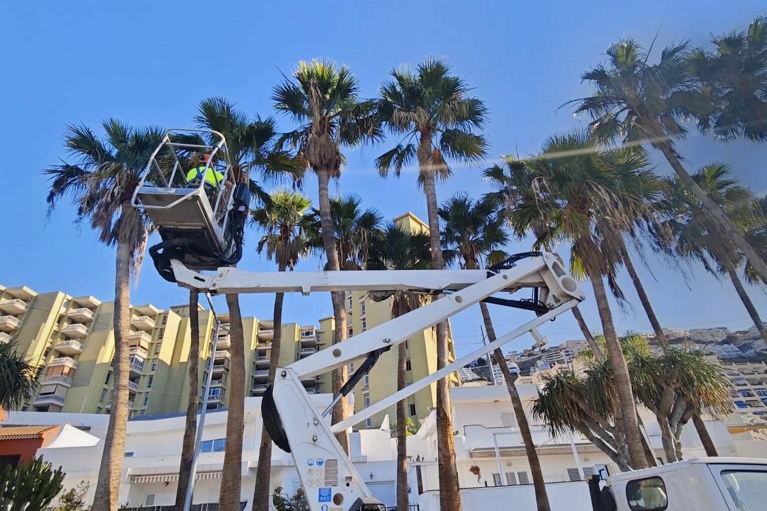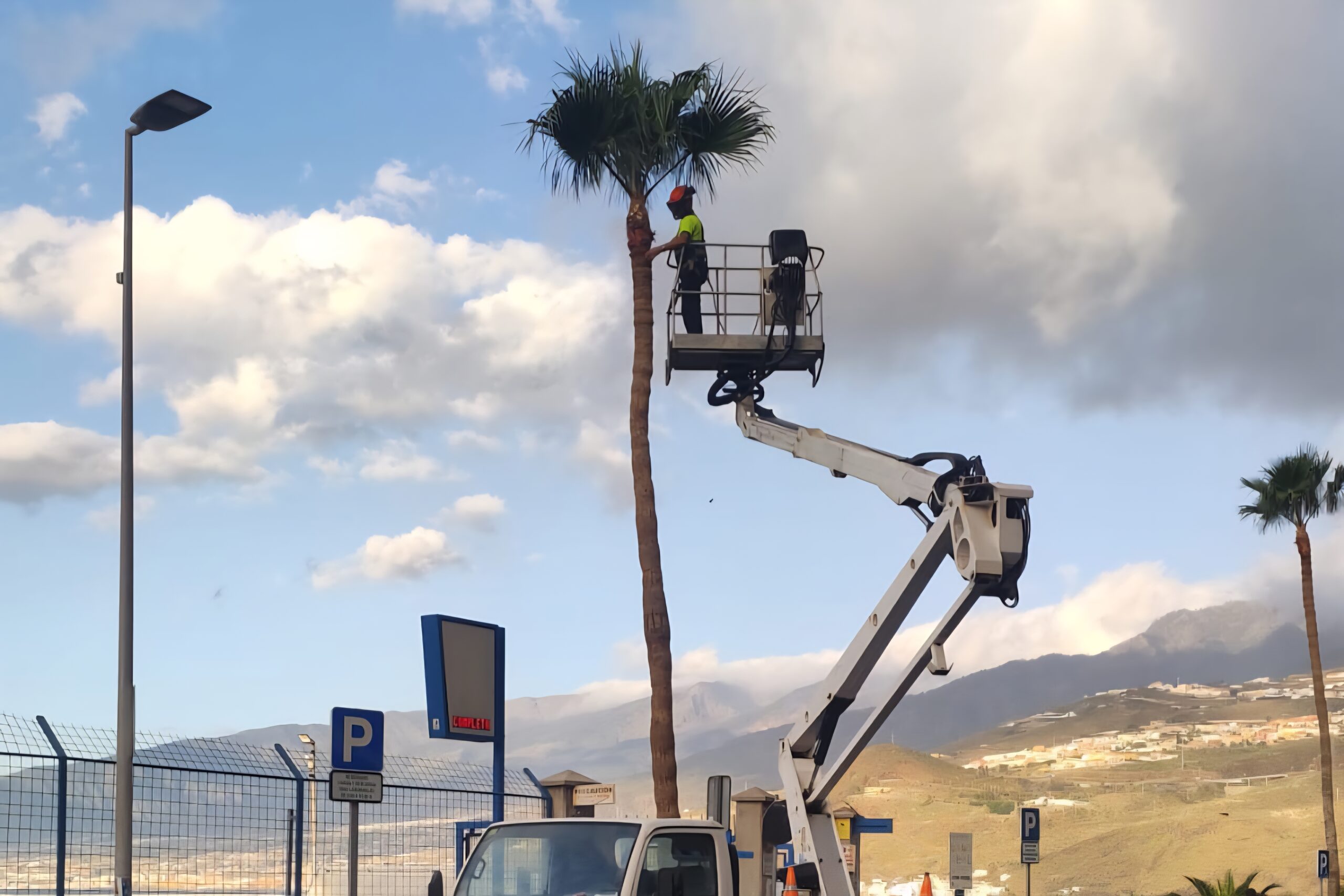 El Ayuntamiento de El Rosario, a través del área de Parques y Jardines que dirige el edil Yeray Gutiérrez, ha procedido recientemente a ejecutar labores de poda, limpieza y saneamiento de las palmeras washingtonias ubicadas en la avenida Colón, en Radazul Bajo, y en la avenida de Las Palmeras, en Tabaiba Baja. En total, más de cincuenta ejemplares se han beneficiado de estos trabajos de poda en altura, que se desarrollaron por tramos para incidir lo menos posible en el tráfico y en el tránsito peatonal de personas, en colaboración con la empresa especializada Jarpepoda. Este tipo de trabajos se llevan a cabo anualmente para aligerar de peso las copas de unos ejemplares de palmera de gran altura, y que, en caso de desgarro de alguna de sus hojas, podría ocasionar daños en vehículos o, incluso, transeúntes, así como para efectuar el saneamiento general de estos ejemplares vegetales.