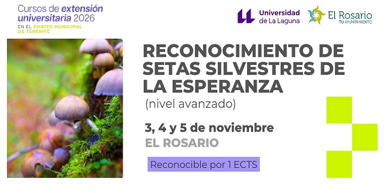 En el caso de El Rosario, en esta edición el Municipio acogerá dos cursos distintos: “La reducción del riesgo de desastres. Aprendiendo a convivir con los riesgos de origen natural”, del 5 al 7 de mayo, y “Reconocimiento de setas silvestres de La Esperanza (nivel avanzado)”, del 3 al 5 de noviembre. Ambas propuestas se impartirán en la Casa de la Cultura de El Rosario y el plazo de matrícula ya está abierto.
